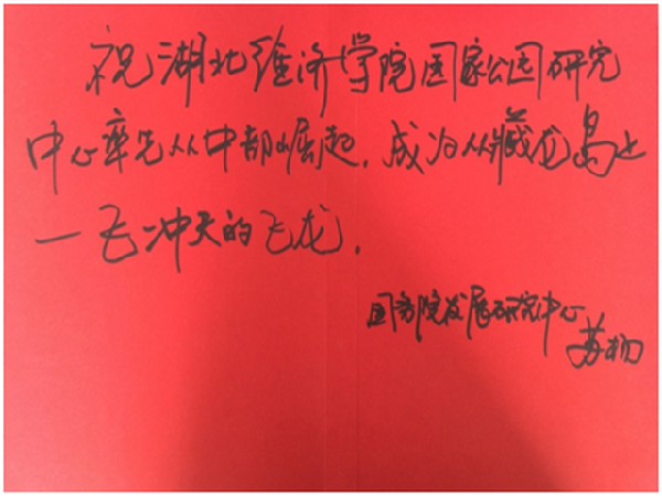 国务院发展研究中心苏杨研究员:祝湖北经济学院国家公园研究中心率先从中部崛起,成为从藏龙岛上一飞冲天的飞龙。