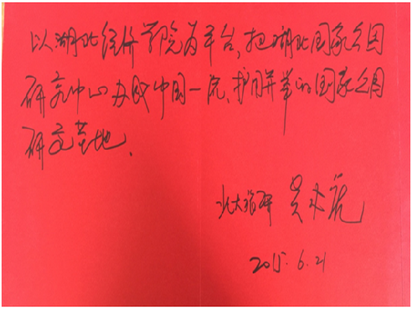 (特约记者:高燕)2015年1月,国家发改委、财政部等十三个部委联合发布《试点建立国家公园体制方案》,2015年3月,国家发改委发布国家公园体制试点区试点实施方案大纲,2015年3月,我院参与到湖北省神农架国家公园体制试点工作中,2015年4月,我院领导随湖北省发改委前往神农架林区及云南调研,2015年6月,国家公园体制研讨会暨“湖北神农架国家公园体制试点实施方案”专家咨询会在我校召开。在这半年中,我院深切关注湖北省国家公园体制试点工作进展,积累了一定的经验,目前正积极筹备成立“湖北国家公园研究中心”。北京大学旅游研究与规划中心主任吴必虎教授、清华大学杨锐教授、国务院发展研究中心苏杨研究员、韩国旅游专家崔德基深情寄语我院湖北国家公园研究中心(筹备中)。