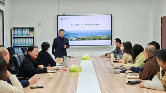 (供稿人:陈立双)2025年11月20日下午,武汉大学教授、《经济评论》主编叶初升老师,以“从Topic到Question:研究设计的三个维度”为主题,为学院教师带来了一场精彩的学术讲座。会议由旅游与酒店管理学院副院长陈立双教授主持,院长毛焱教授和学院教师代表参加了本次学术活动。