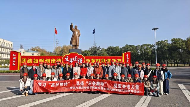 本网讯(通讯员:郭明月 李鸽,审核:孙浩)11月27日,旅游与酒店管理学院党委组织五十余名师生党员前往武钢一号高炉国家工业遗址,开展“学习‘高炉精神’,弘扬‘三争精神’,凝聚奋进力量”师生支部共建主题实践教育活动。