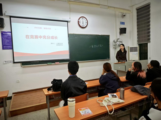 活动开始,各团支部组织团员齐唱中国共产主义青年团团歌并重温入团誓词。学院团委书记付睿思老师深入旅游2541团支部,为同学们系统介绍了我校学科竞赛奖励细则,鼓励同学们勇于尝试、积极备赛,将专业知识与创新实践相结合,在竞赛舞台上锤炼真本领,展现学子风采。随后,拥有丰富学科竞赛经历并屡获佳绩的旅游2342班熊晓雪同学进行经验分享。她结合自身参与“商业精英挑战赛”“挑战杯”等高水平学科竞赛的实战经历,倾囊相授宝贵经验与心得体会,以榜样的力量极大地鼓舞了在场同学,让大家对参与竞赛有了更清晰的规划和更充足的信心。