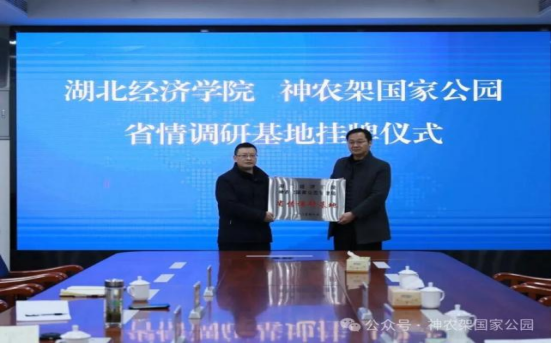 (供稿:王刘坤;审核:陈立双)12月5日上午,湖北经济学院与神农架国家公园管理局共建的“省情调研基地”,在神农架国家公园候选区正式挂牌成立。挂牌仪式在神农架国家公园候选区生态文化展示中心举行。湖北经济学院旅游与酒店管理学院副院长教授陈立双,神农架国家公园管理局副局长柯尊伟出席活动并共同为基地揭牌。