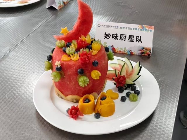 本网讯(供稿:付睿思 审核:孙浩)近日,我院2025年“匠心厨艺·青春盛宴”烹饪大赛圆满收官。为深化“以赛促学、以赛促练”的教学理念,夯实我院学子的专业能力,学院精心策划并组织了水果拼盘大赛与热菜大赛,共同构成了年度烹饪大赛的华彩篇章,此次烹饪大赛不仅是味觉的盛宴,更是师生互动、展示美食创意与厨艺的绝佳机会。