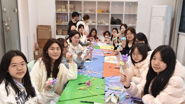 欢声笑语中,原本普通的扭扭棒被赋予了新的生命力。大家纷纷举起自己的作品展示,脸上洋溢着成就感与喜悦。不少同学表示,这次活动不仅锻炼了动手能力,更让大家在忙碌的学习生活中找到了一种温柔放松的方式,用亲手制作的花束传递温暖、安抚自我,也增进了彼此之间的理解与支持。
