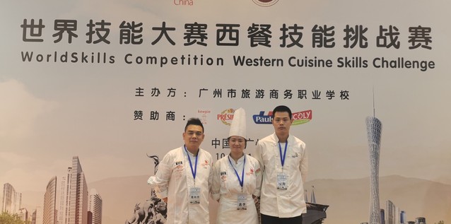 11月1日,我院第46届世赛选手李夏薇、李鑫鑫,教练王波在广州市旅游商务职业学校参加世界技能大赛西餐技能(广州)挑战赛。