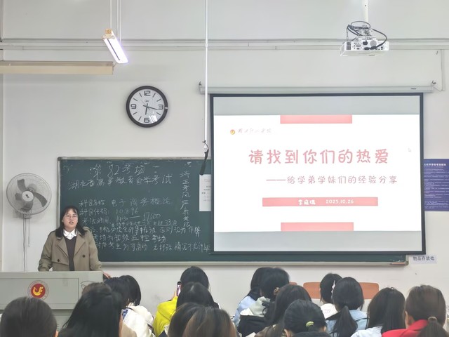 交流会上,李庭瑞以“请找到你们的热爱”为主题,结合自身经历进行了真诚而深刻的分享。她从专业认知、大学规划到未来方向,为同学们“拨云见日”,让新生们更加清晰地理解上大学的意义与目标,缓解了初入校园的焦虑与迷茫。她强调,大学生活丰富多彩,但学习始终是第一要务,唯有在学习与娱乐之间保持平衡,才能实现真正的成长。