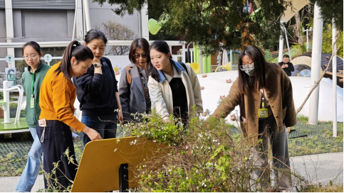 随后,师生团队聚焦于研学旅行产品的设计逻辑与体验转化路径,开展了一次具有明确产品思维导向的深度考察。在研学实践中心,师生全面观察了低龄儿童的自然观察课堂。从显微镜操作指引、自主发现任务设置,到观察记录与分享环节,这一标准化、可复制的流程模块,为设计高互动性、强引导性的短时沉浸式研学旅行产品提供了可直接借鉴的模型。在“植植屋”自然教育空间,团队系统解构了其“从认知到创造”的场景化产品逻辑。以“藕”等特定主题贯穿种植、手工、科普的完整情境链路,生动演绎了如何将静态植物资源,转化为一个具有深度叙事性和高参与度的主题体验产品,这为综合性文旅项目的主题凝练、活动分层与体验深化带来了颇具启发的范式参考。